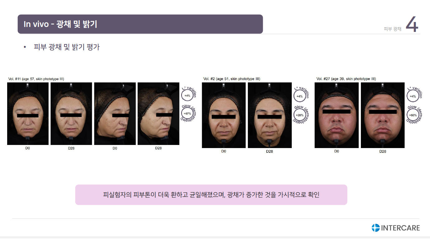 다양한 인종 임상 실험 백인 및 혼혈 ), 피부 광채 , 탄력 개선 효과 확인
