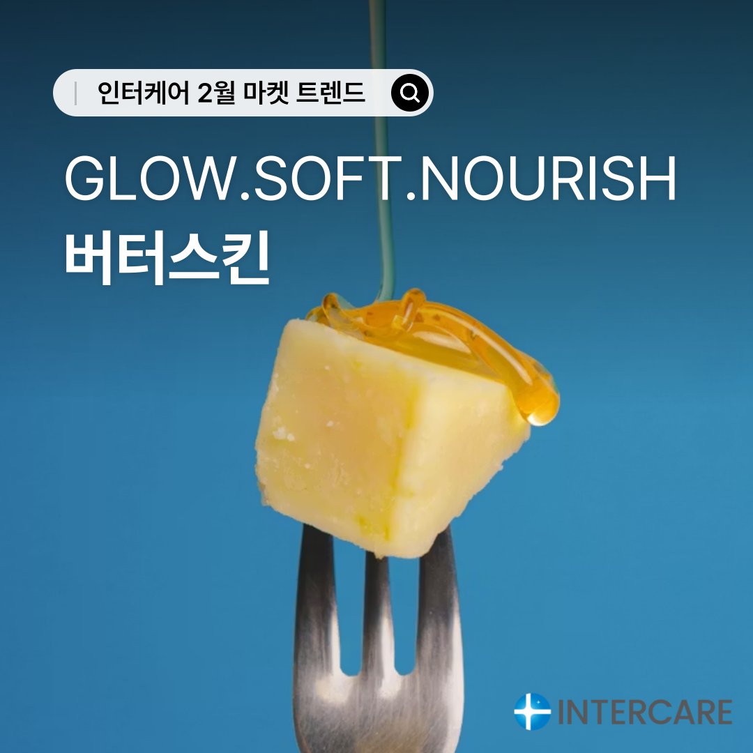 2026년 2월 마켓 트렌드에서는 글로우 스킨케어 흐름 속에서 지속적으로 변주되고 있는 스킨케어 텍스처 중, 매끄럽고 윤기 나며 속이 꽉 찬 듯한 탱탱한 피부 표현인 '버터스킨(Butter Skin)' 트렌드와 인터케어 원료를 함께 소개합니다. 💌자료 요청: intercare@intercare.co.kr
