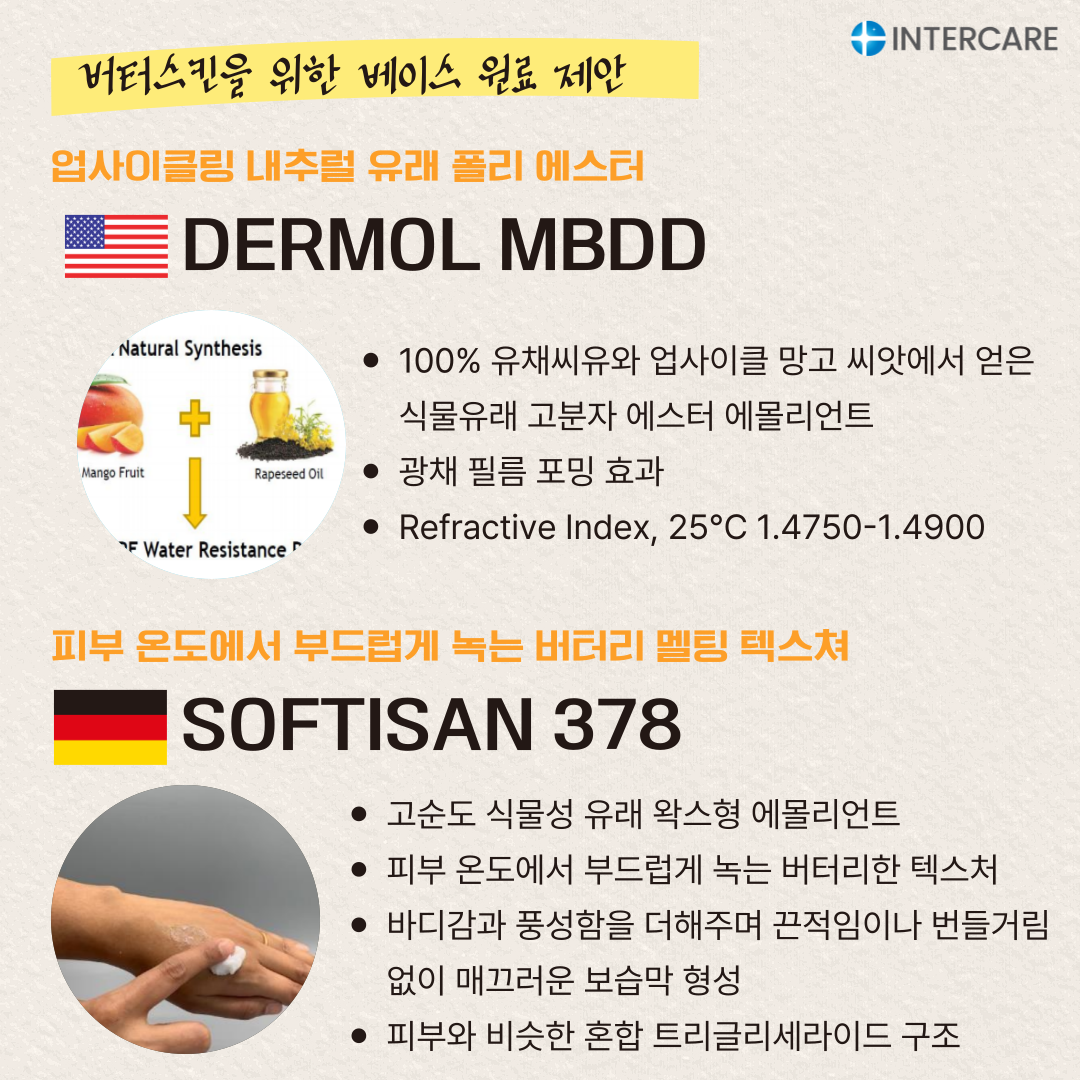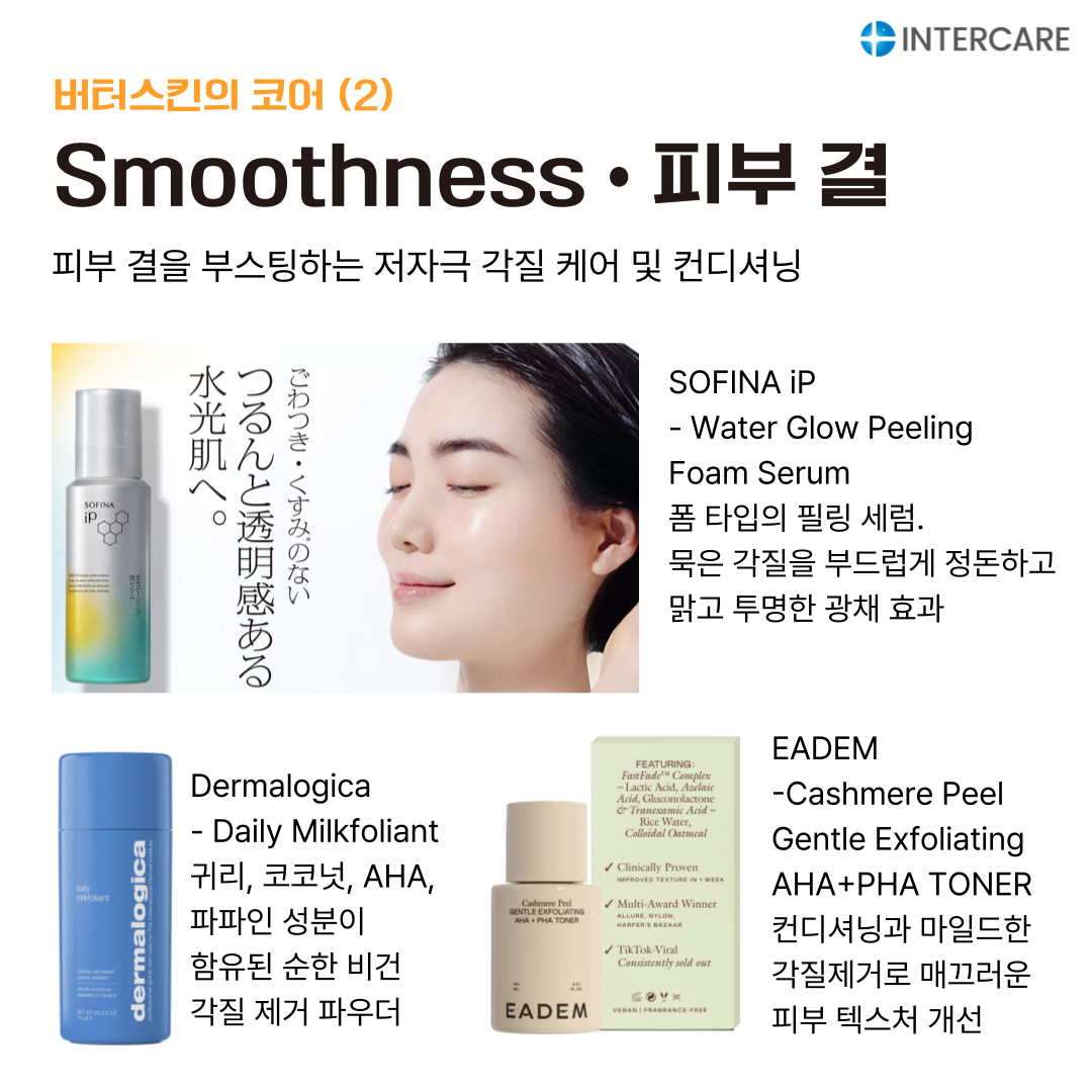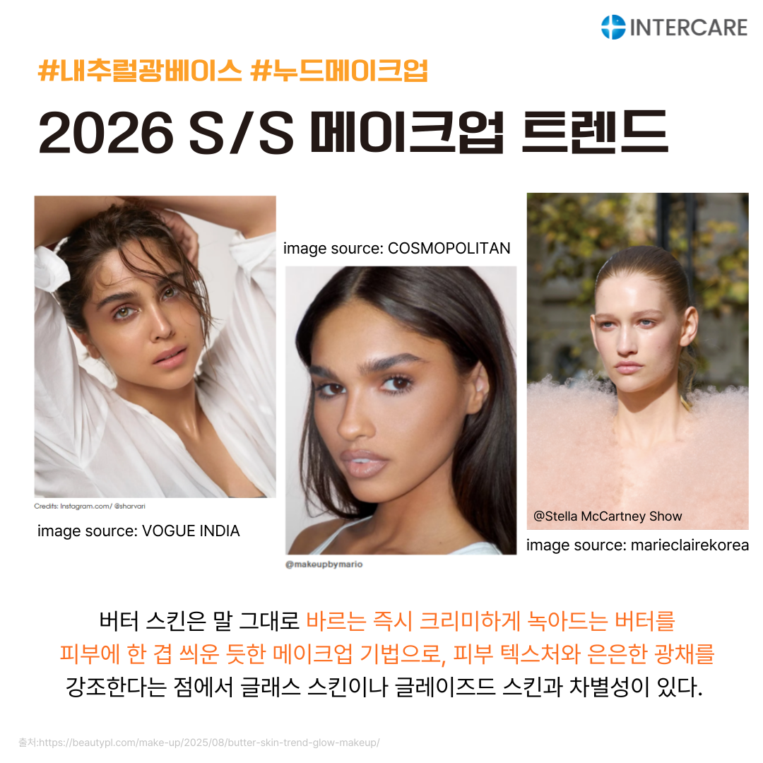 2026년 2월 마켓 트렌드에서는 글로우 스킨케어 흐름 속에서 지속적으로 변주되고 있는 스킨케어 텍스처 중, 매끄럽고 윤기 나며 속이 꽉 찬 듯한 탱탱한 피부 표현인 '버터스킨(Butter Skin)' 트렌드와 인터케어 원료를 함께 소개합니다.