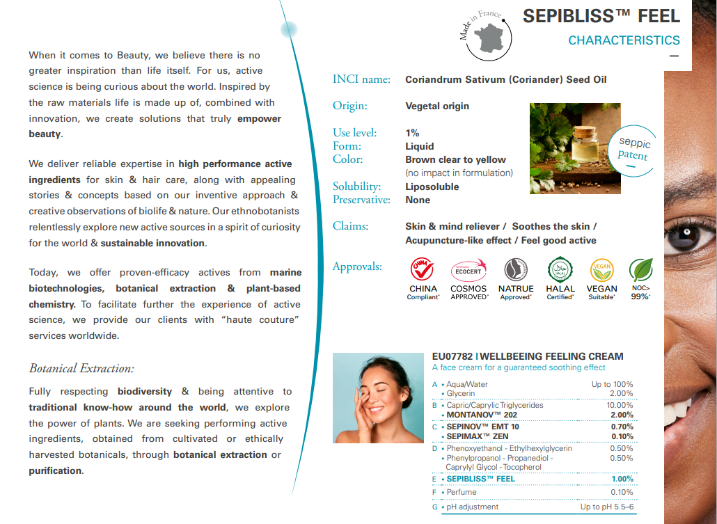 민감한 피부에 편안함, 진정, 영양 공급(Sepibliss™ Feel 1% 함유 실험)