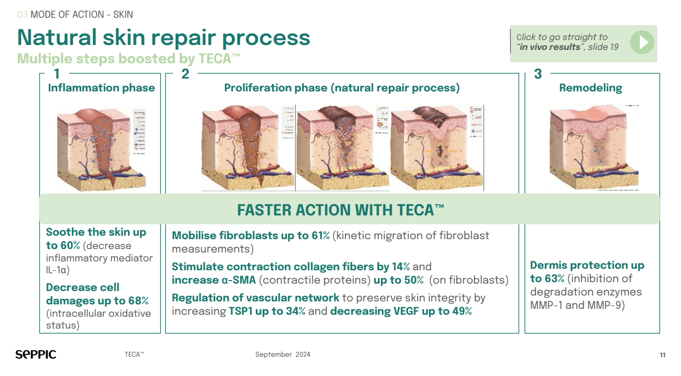 • 3단계 과정 (진정 및 세포 손상 억제 → 피부 복구 → 피부 리모델링)으로 뛰어난 피부 재생 효과